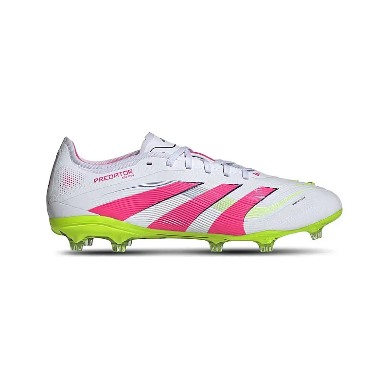 Le Adidas Predator Pro FG adulto sono scarpe da calcio pensate per precisione e potenza. La tomaia tecnica con zone di controllo migliora la sensibilità di palla, mentre i tacchetti FG garantiscono trazione su campi naturali compatti. La calzata avvolgente offre stabilità e comfort. Perfette per giocatori di alto livello che cercano scarpe affidabili, performanti e con uno stile iconico tipico della linea Predator.